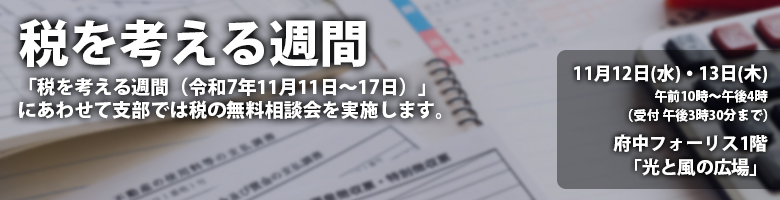 「税を考える週間(令和7年11月11⽇〜17日)」にあわせて支部では税の無料相談会を実施します。(予約不要)